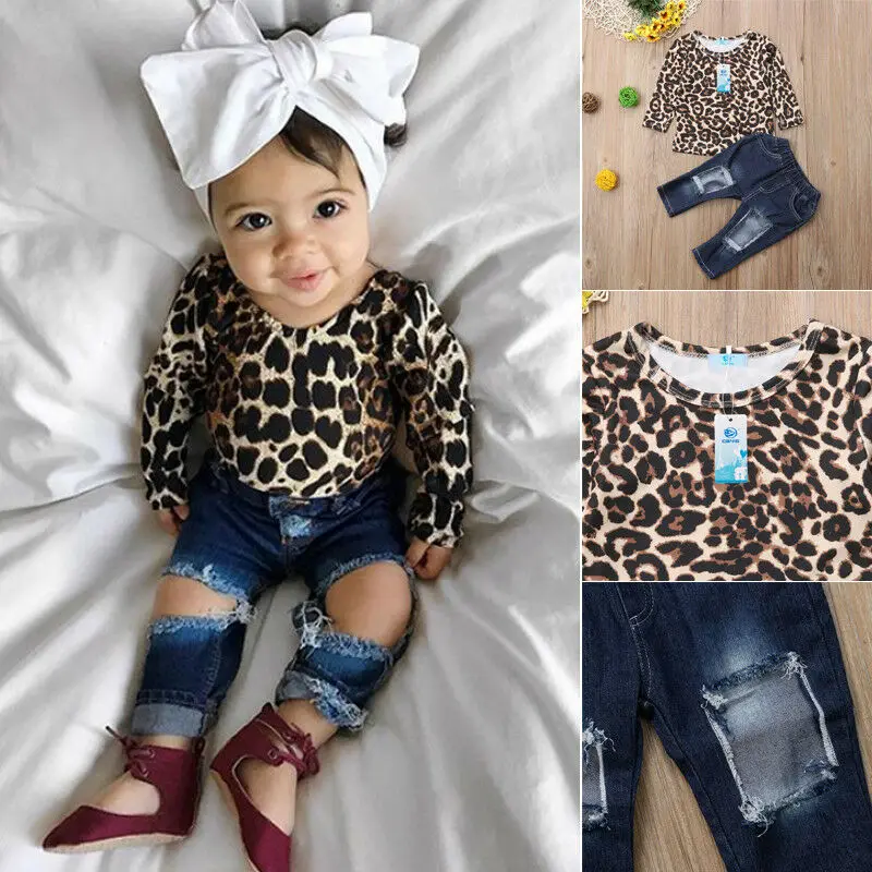Buy Toddler Baby Girl Leopard Long Sleeve Tops Shirt Ripped Denim Destroyed Jeans Pants Kids Clothes Ou Right Here and Right Now Just for USD US $4.60, Price will be rise up at any time without notification and I cant guaranted that the stock is still available tommorow or next hour. So Please Save It Now!